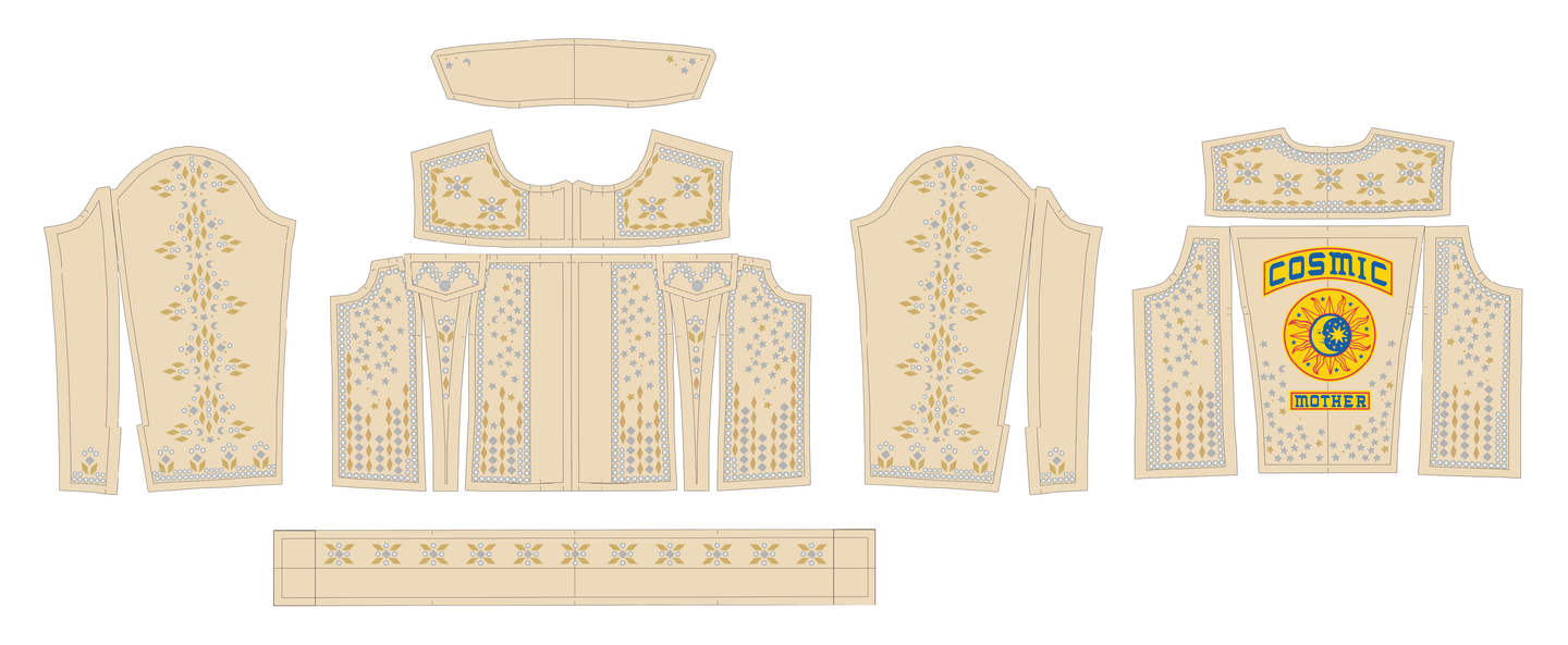 Patterns, graphics, and accessories I designed for MOTHER Denim’s Women’s 2026 collections. Inspired by western, psychedelic, and celestial themes.
